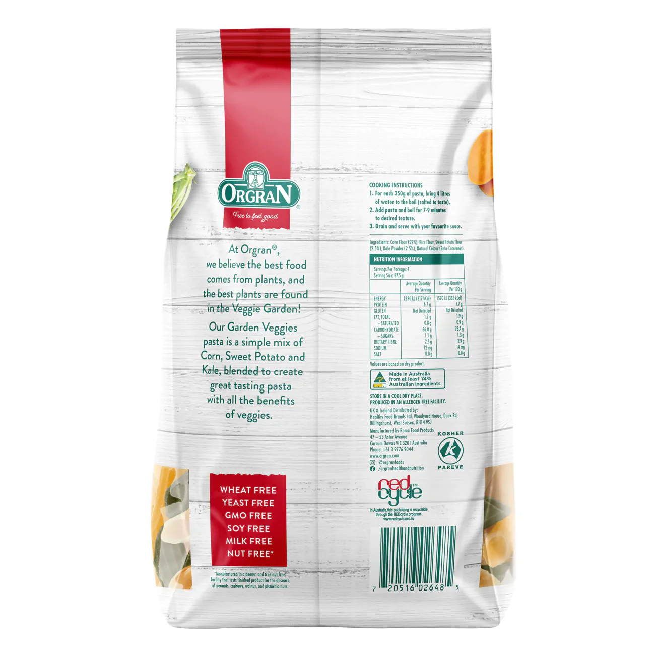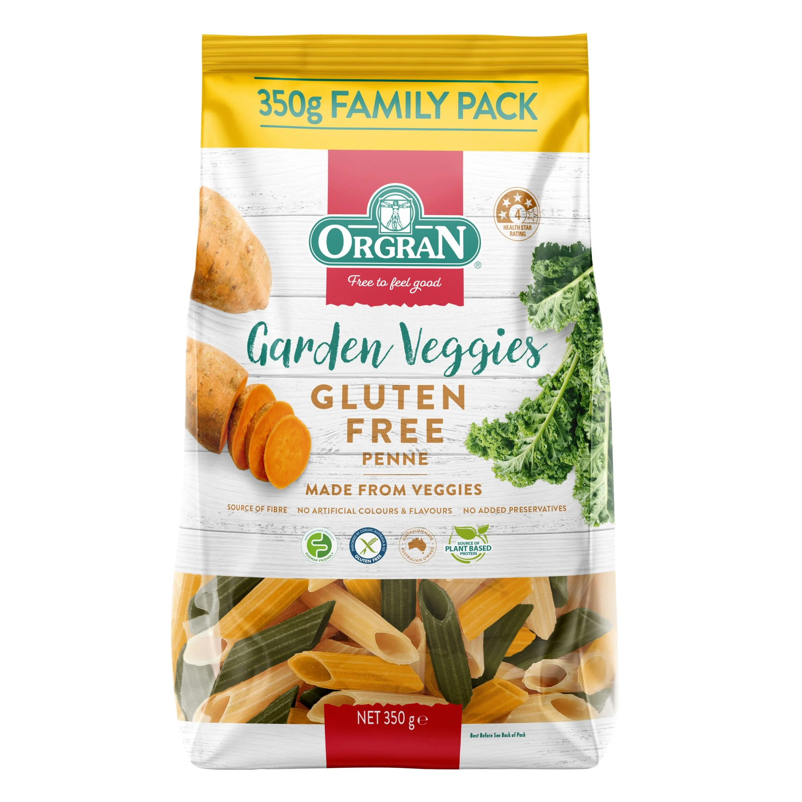 Orgran Garden Veggies Penne is a mashup of corn, sweet potato, and kale – providing tasty pasta with vegetable-y goodness. It’s like an edible garden party!
